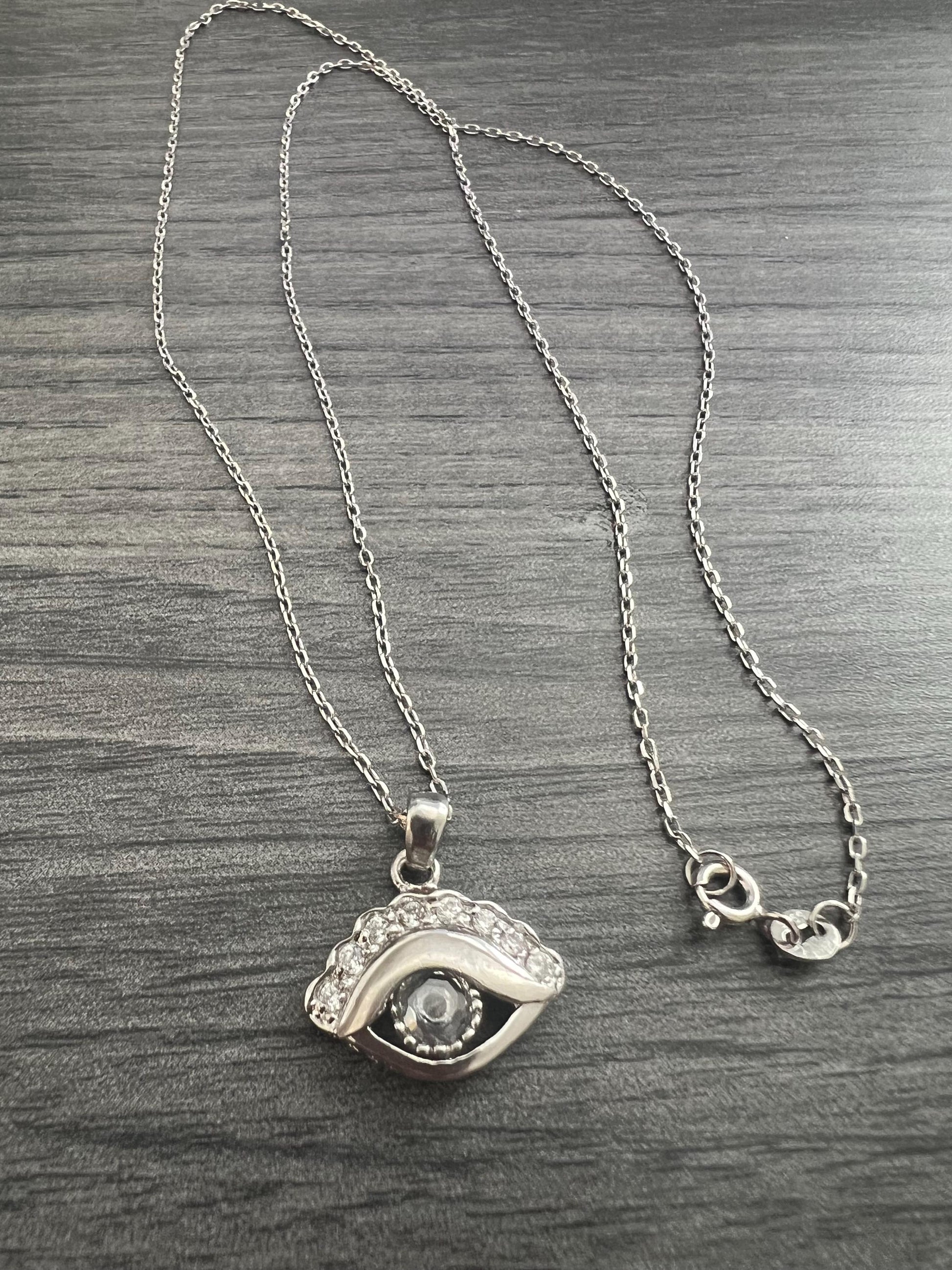 Evil Eye Necklace, Protection Necklace, Italian 950-Sterling Silver Evil Eye Necklace with chain. 950 Stamped jewelry is a high quality grade of Italian sterling silver. It contains more pure silver than other grades.
