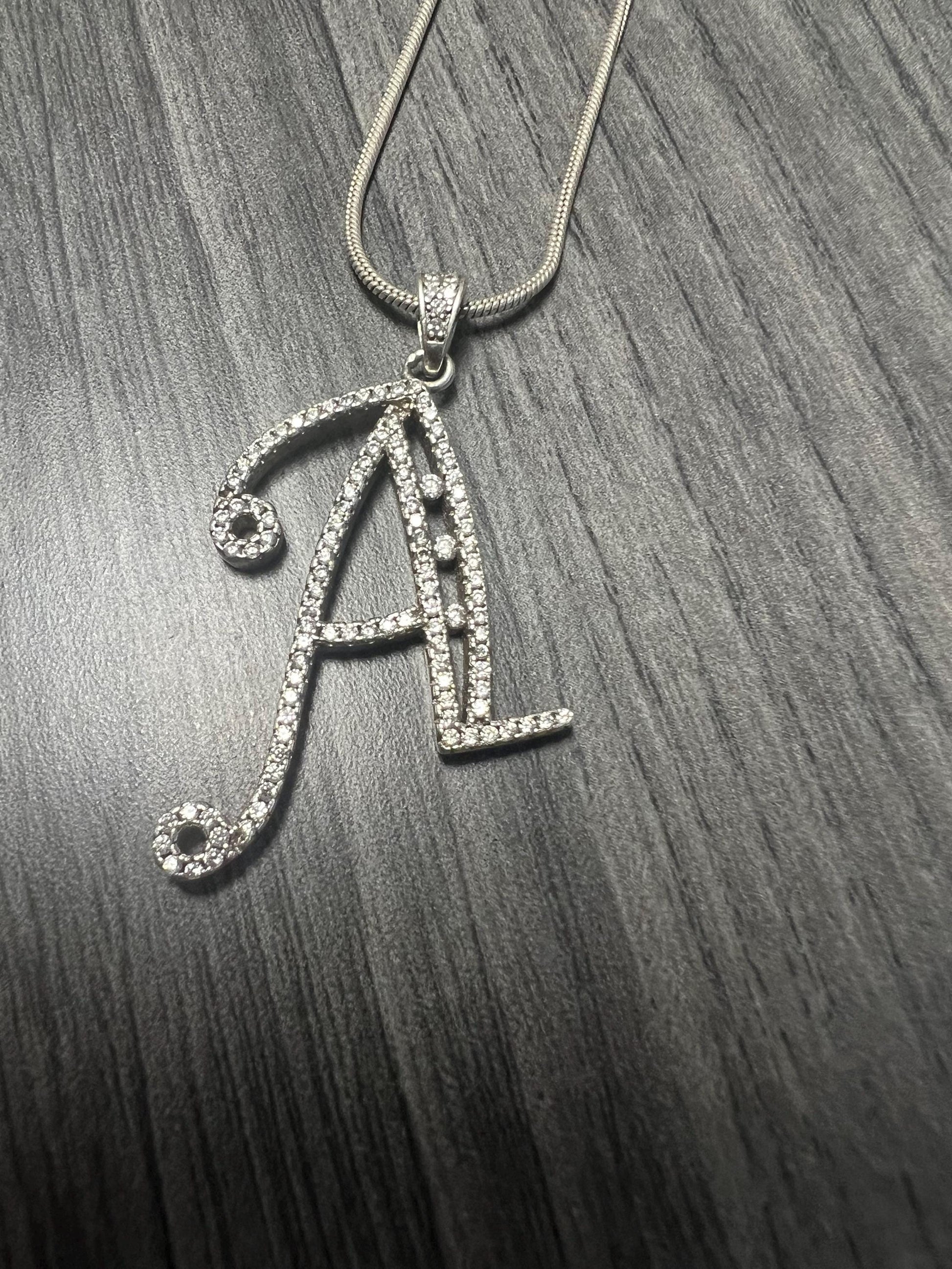 ✨ Personalized Initial "A" Necklace ✨Add a touch of elegance and sparkle to your everyday look with this stunning Initial "A" Pendant Necklace. Designed with shimmering cubic zirconia stones set in a graceful script style, this piece shines beautifully from every angle.💎